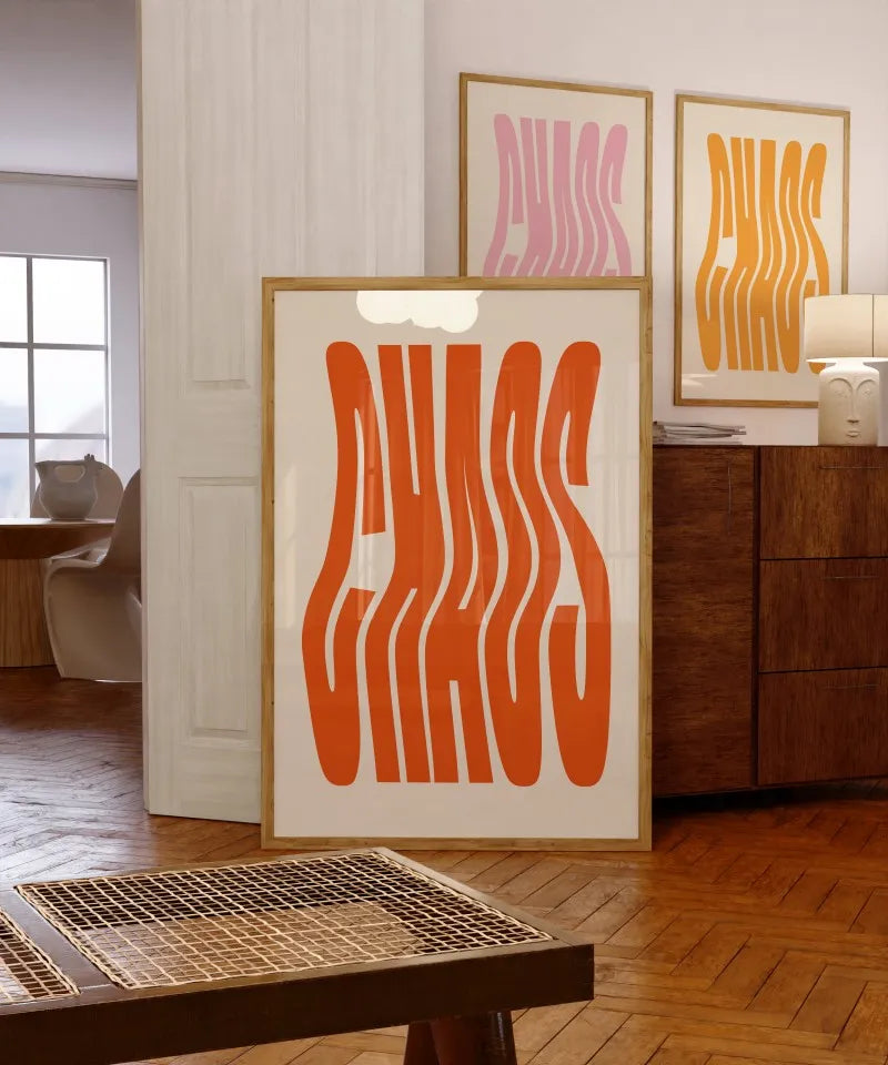 Chaos Typography Art Print and Posters Modernist Wall Art Chaos Quote Canvas Paintings Preppy Aesthetic Living Room Picturess