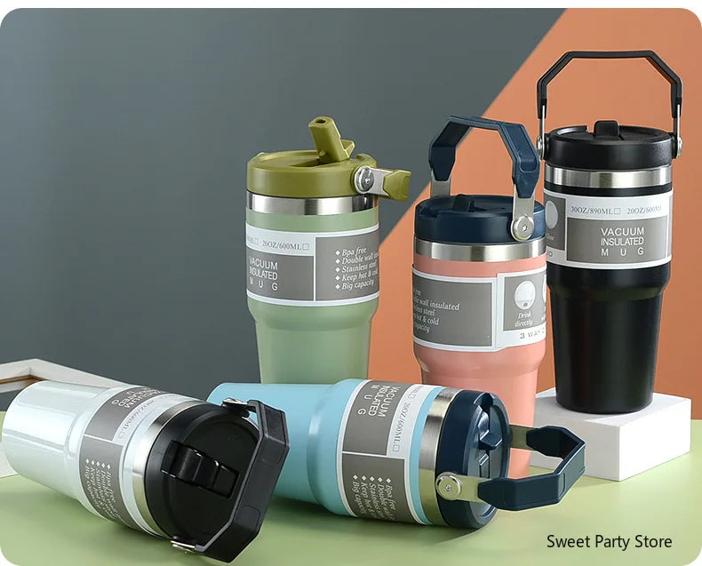20oz/30oz Stainless Steel Thermos Mug With Straw Keeps Cold and Heat Thermal Mug Tumbler Outdoor Sports Thermal Water Bottle