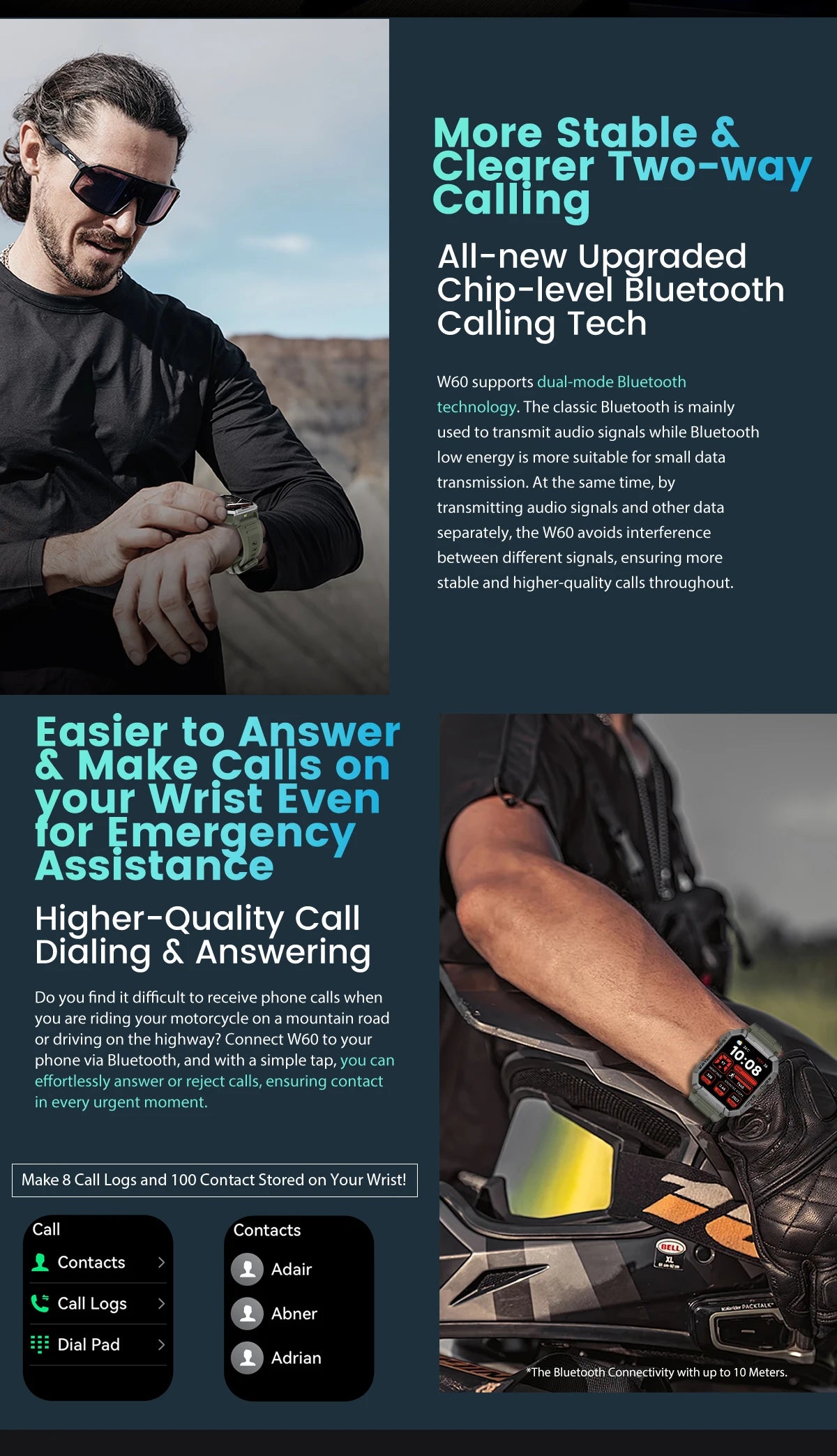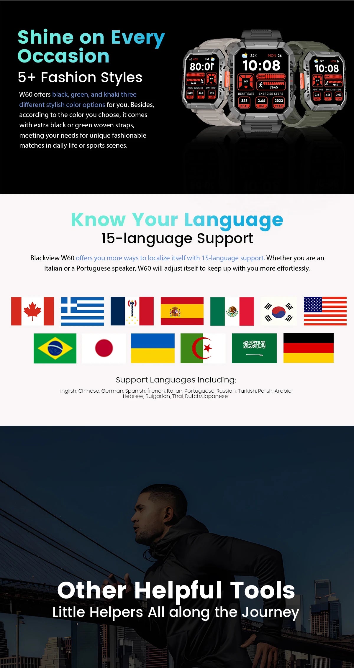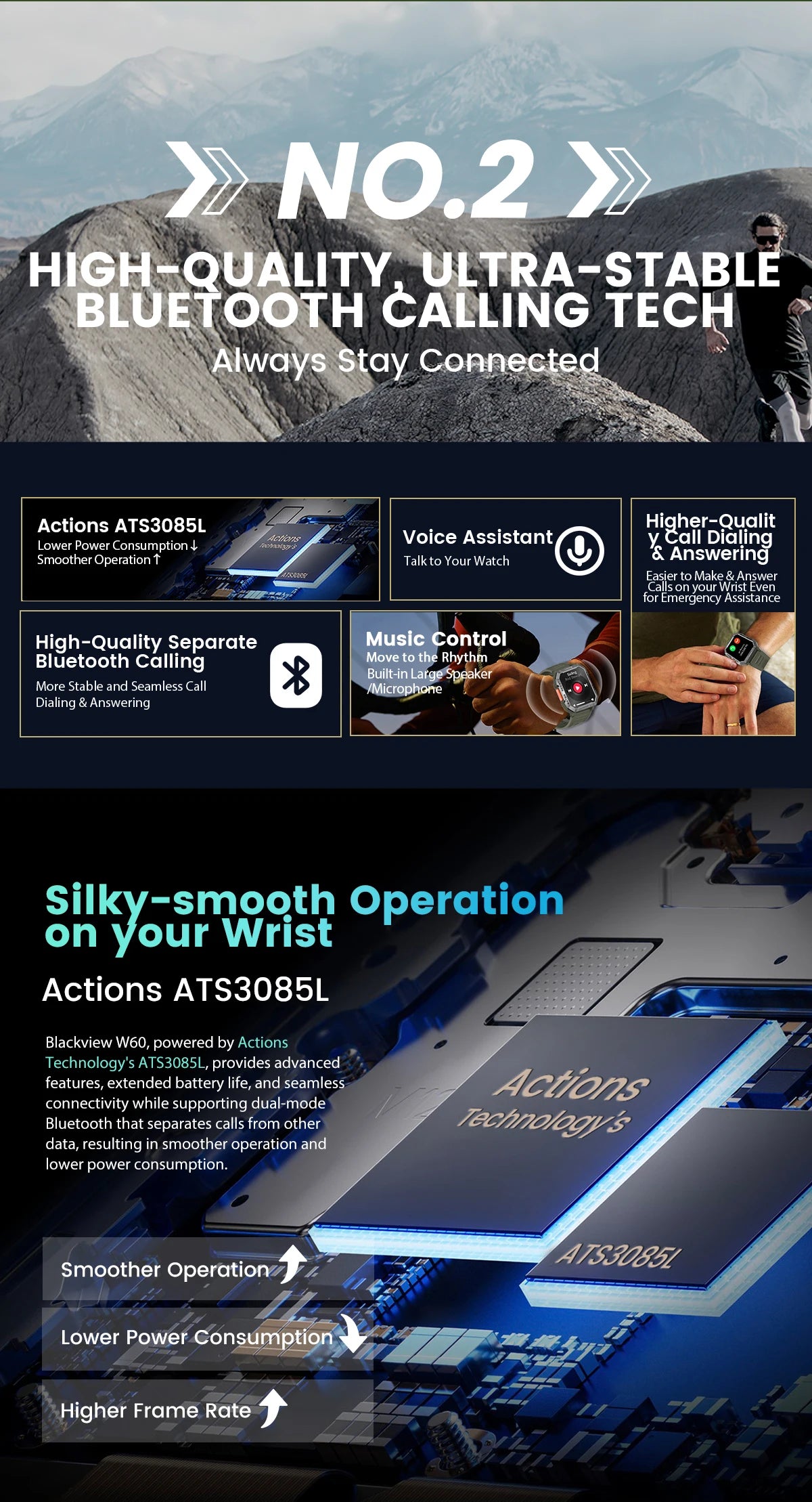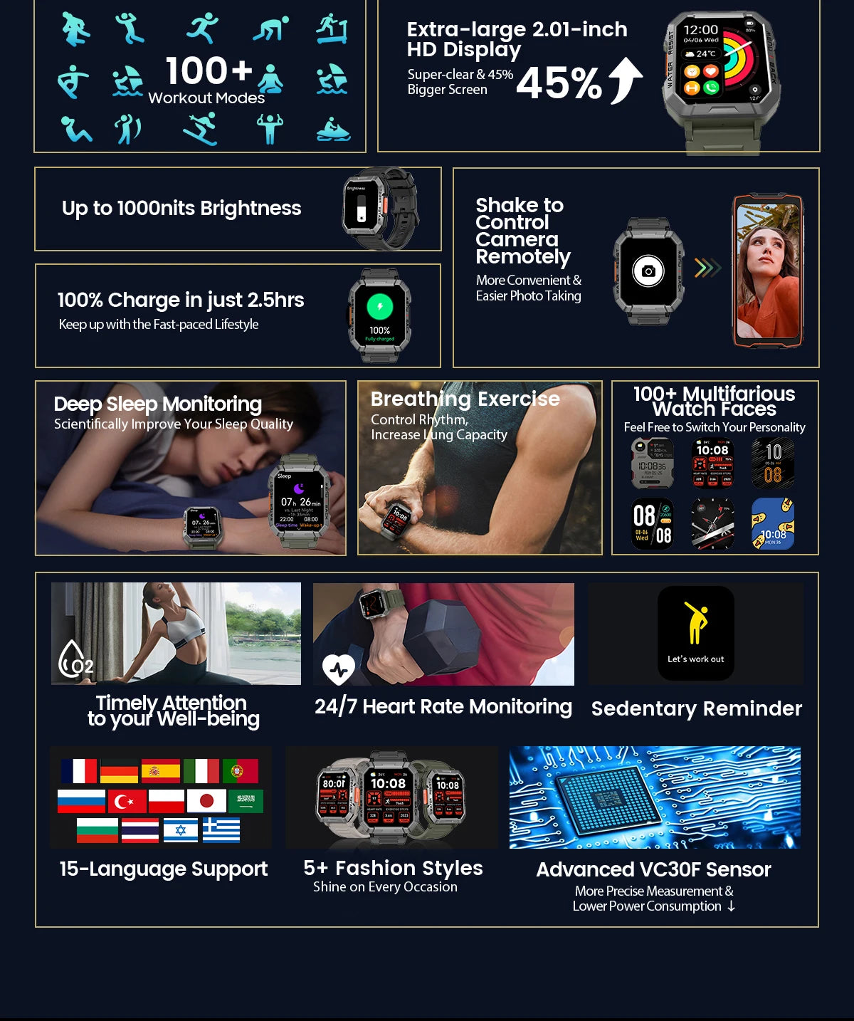 Blackview W60 2024 New Smartwatch 2.01'' HD Display TFT Rugged Smart Watch for Outdoor With Emergency Lighting Bluetooth Calling