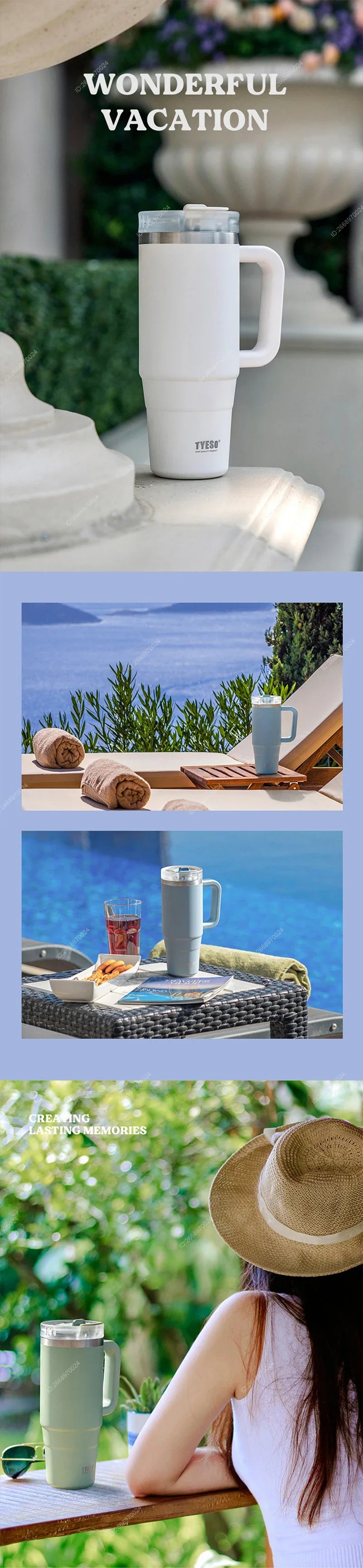 Tyeso 900/1200ML Tumbler Bottle Stainless Steel Car Mug With Handle Straw Thermal Iced Travel Vacuum Insulated Coffee Hot Cup