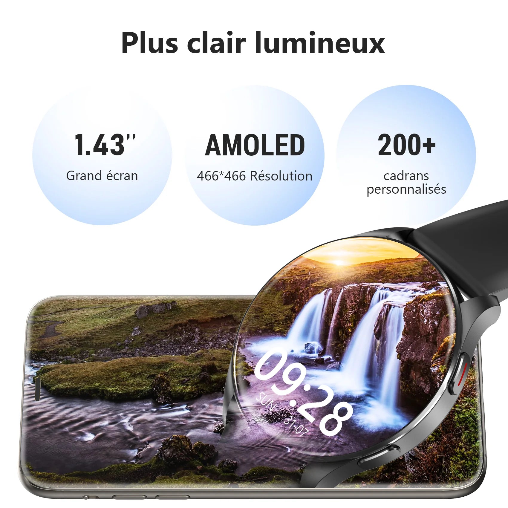 Blackview X20 Smart Watch with Health Monitoring Fitness Tracking 1.43” HD AMOLED Screen Bluetooth Watches for Men Women Gifts