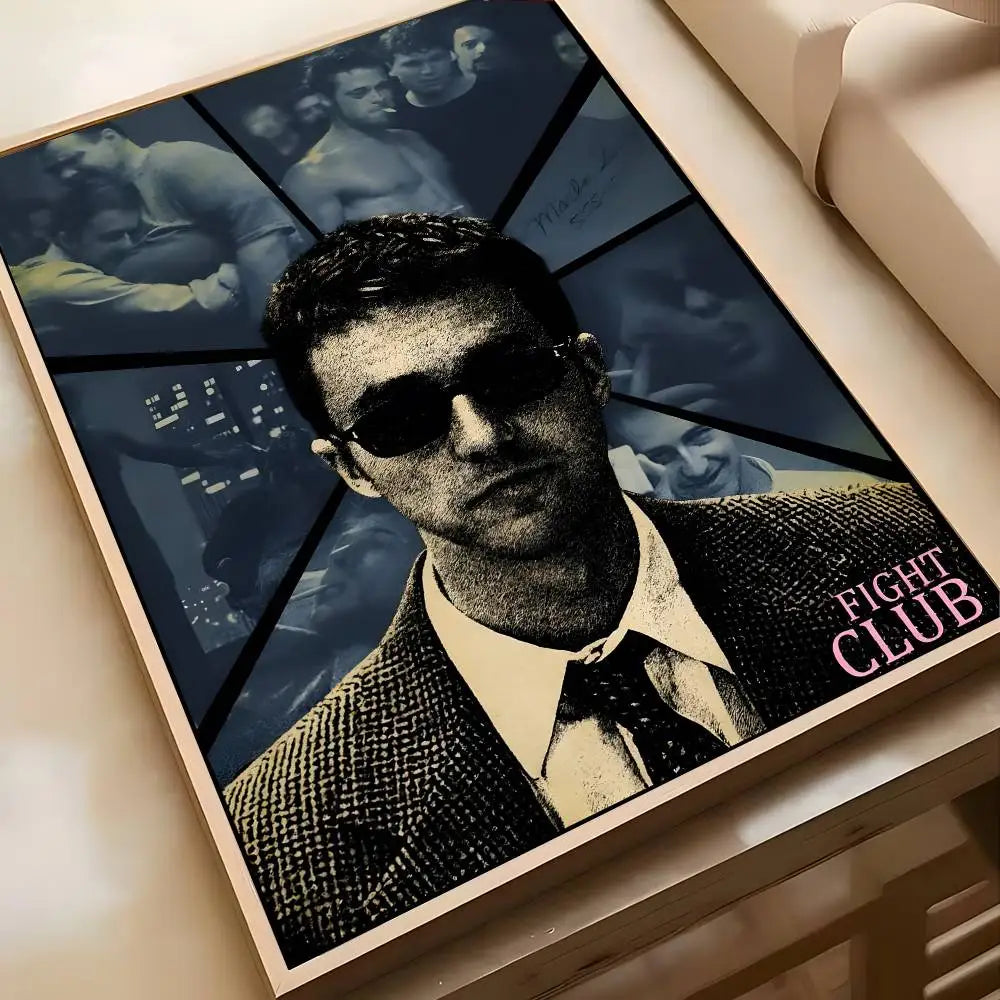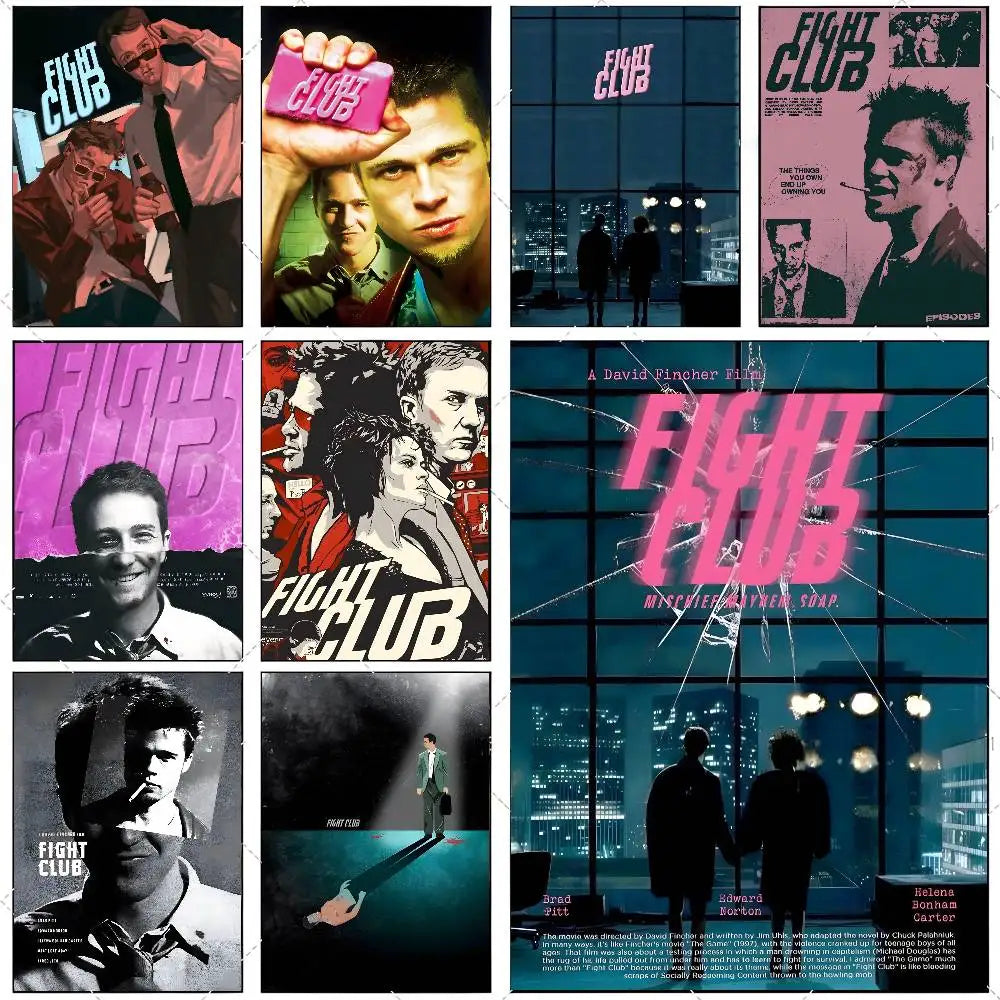 Movie Sticky Fight Club Poster High-definition art sticker Self adhesive waterproof home decoration for living room