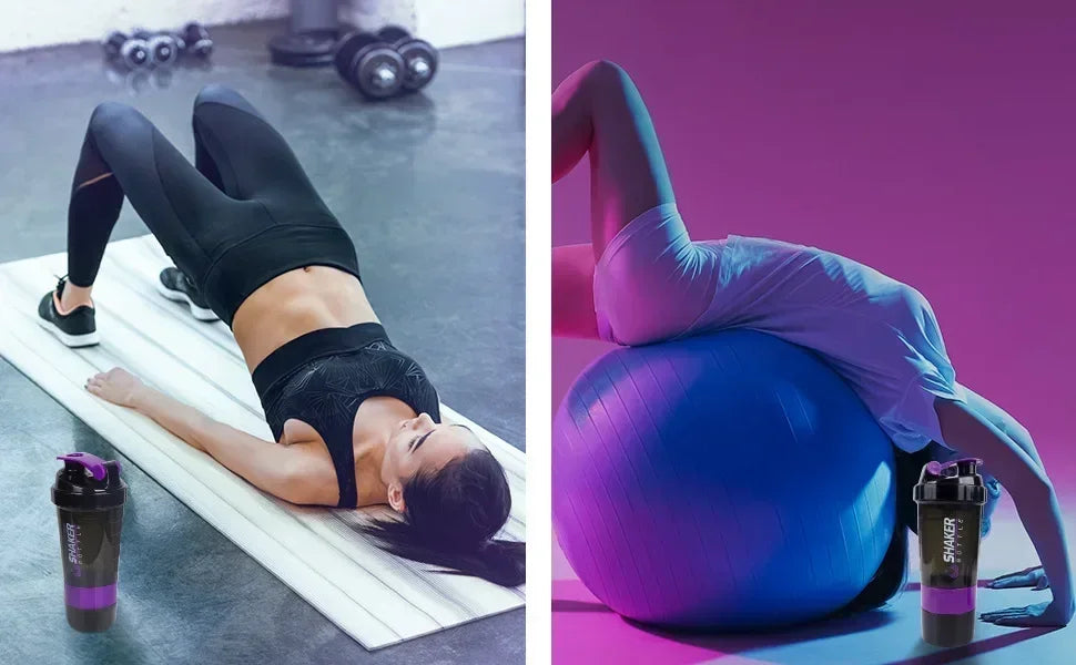 500ml Layered Protein Bottle Powder Shaker with Powder Storage Container Large Water Bottle Water Bottle with Wire Stirring Ball