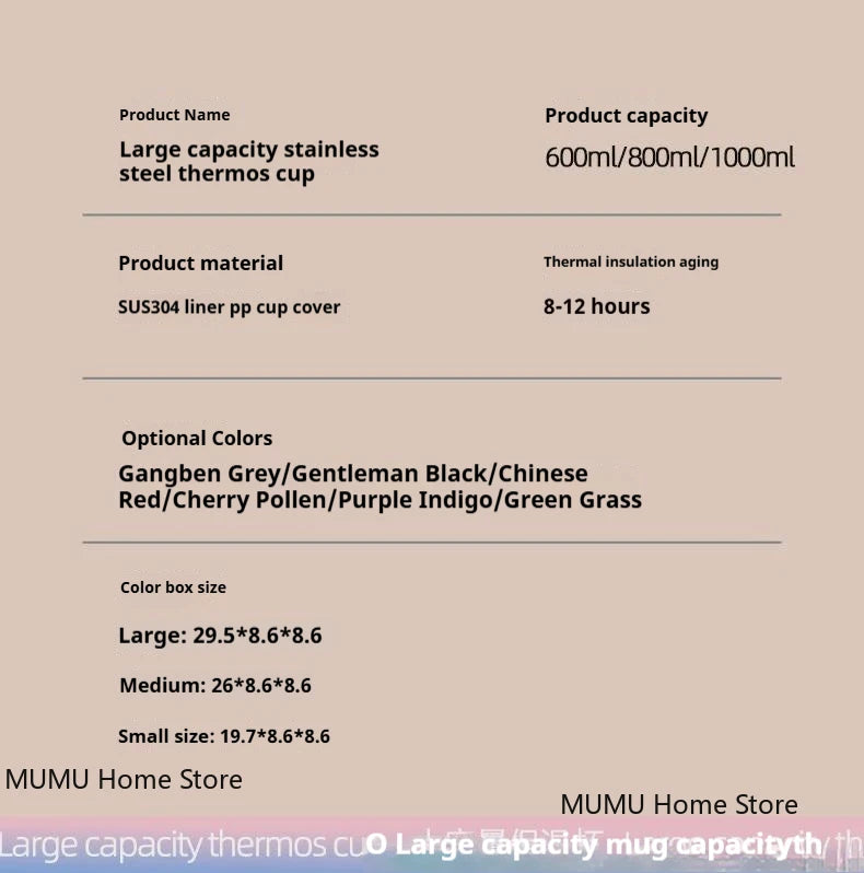 600/800/1000ML Outdoor Thermos Water Bottle Stainless Steel Insulated Cup Keeps Cold and Heat Thermal Mug Travel Vacuum Flasks