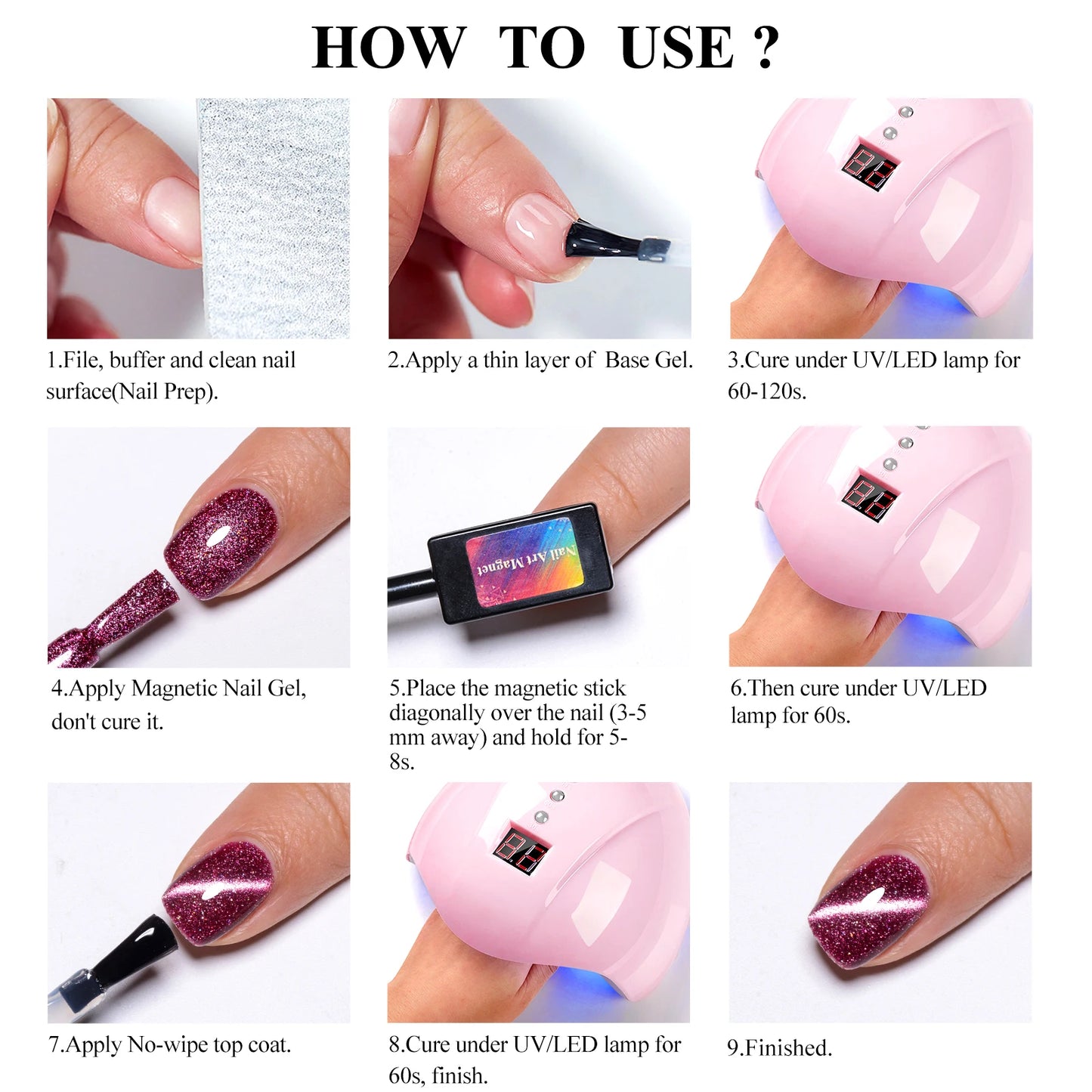 7pc Cat Magnetic Nail Gel Polish Set Long Lasting Glitter Nail Supplies Soak Off UV/LED Vernis Gel Kit for Manicure Design