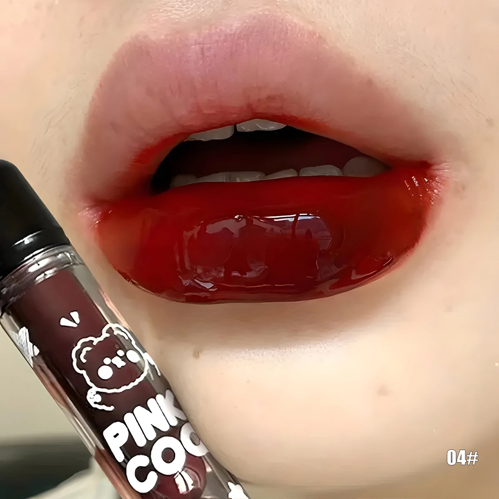 Adorable Bear Mirror Lip Glaze - Long-Lasting, Non-Fading, Hydrating Liquid Lipstick with Watery Texture - Luxurious Glossy Shin