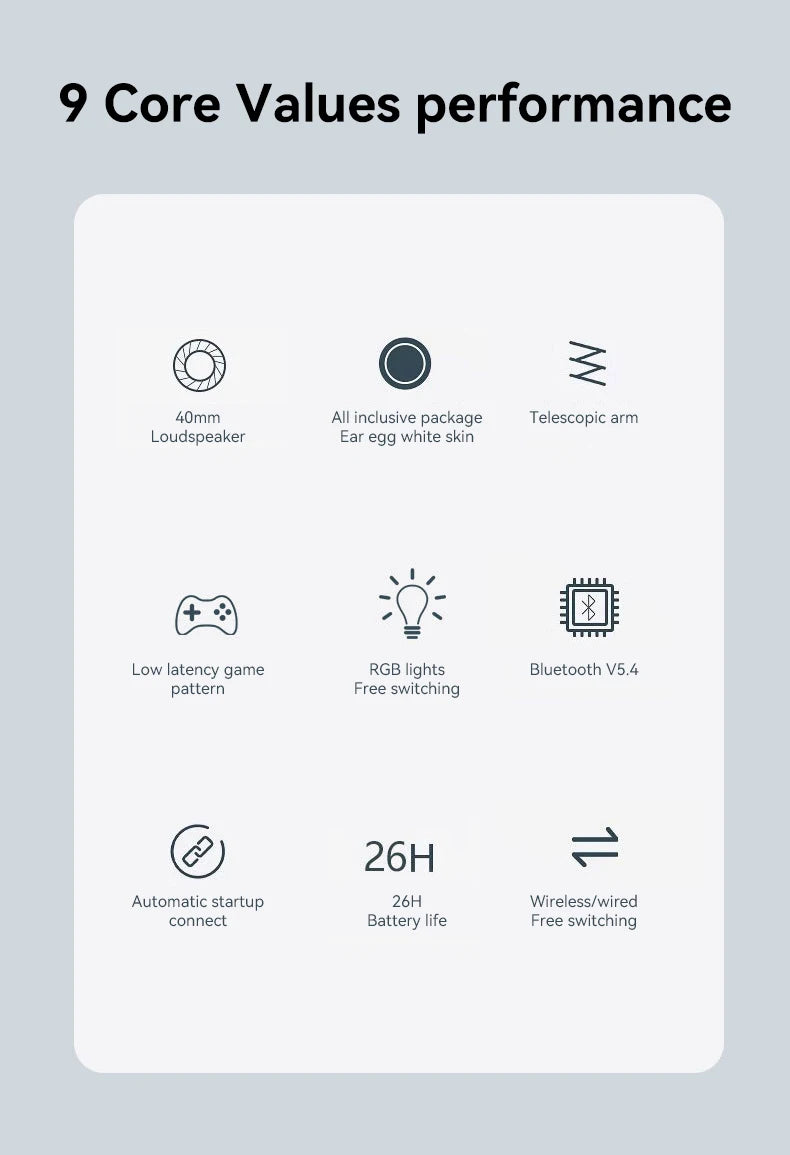 B500 Over Ear Headset Bluetooth5.4 Wireless Stereo Gaming Earphone Built-in Mic RGB Light Low Latency Headphone For PC