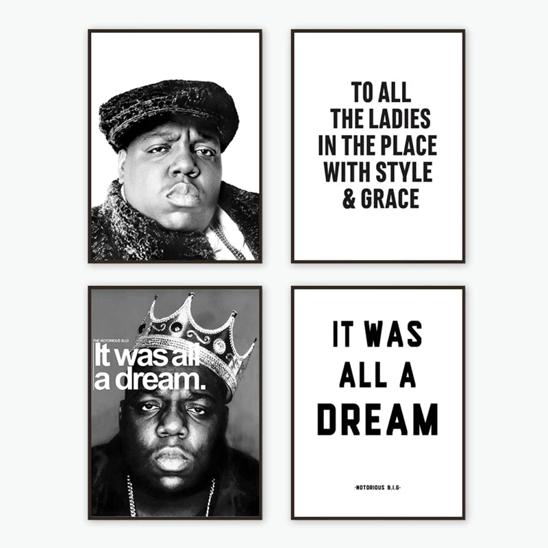 Biggie Smalls Notorious B.I.G Posters and Prints Hip Hop Music Lyrics Quote Black White Wall Art Canvas Painting Home Decor