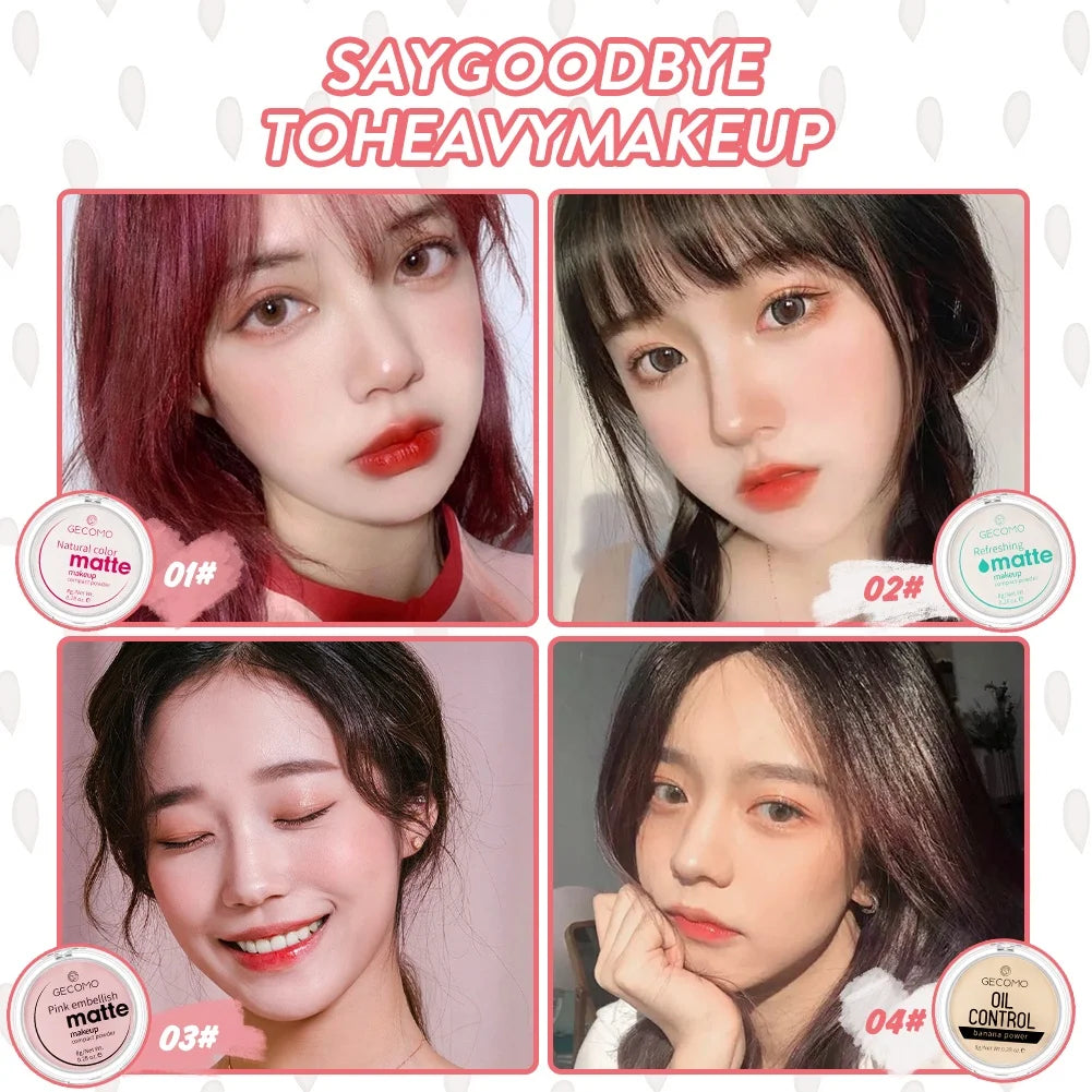 GECOMO Mattifying Compact Powder 12H Long Last Oil Control Silky Matt Makeup Setting Powder Translucent For All Skin Tones