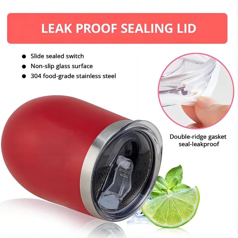 KUUJOJO 12 oz Wine Glass with Lid Stemless Wine Glass Double Walled Vacuum Travel Mug Stainless Steel Coffee Mug