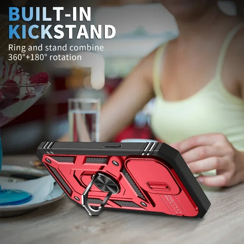 Luxury Slide Camera Lens Protection Armor Case for iPhone 17 16 15 14 Plus 13 12 Pro Max Military Grade Bumpers Metal Ring Cover