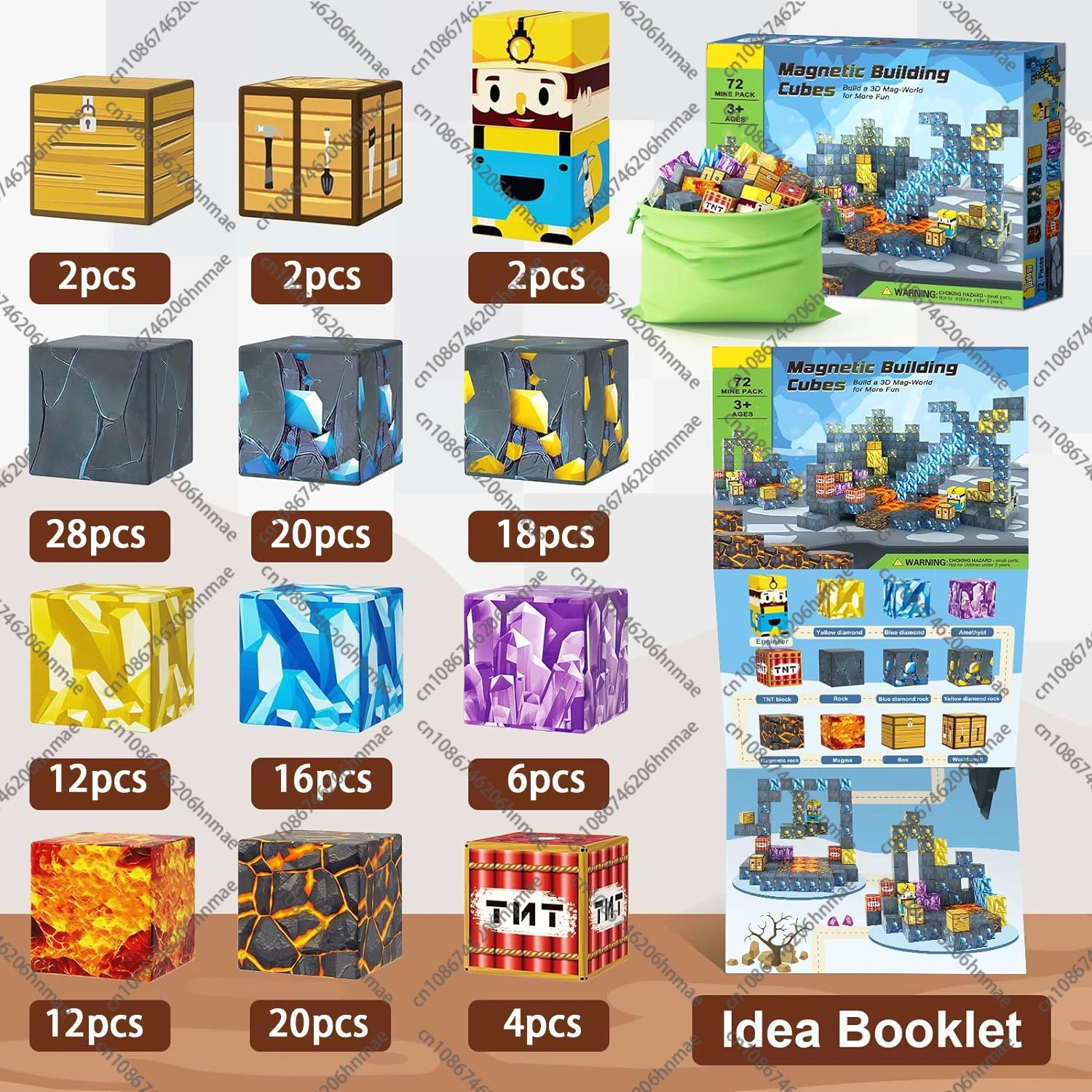 Magnetic Building Blocks Mine World Magnet Cube Set STEM Montessori Sensory Toy for Kids Boys Girls Ages 3+ DIY Model Children
