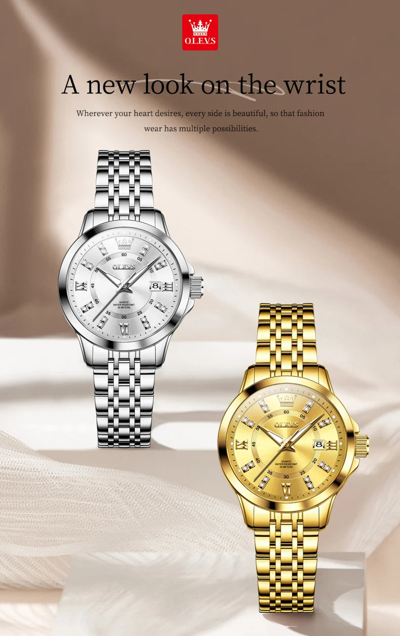 OLEVS 3620 Womens Watches Original Brand Elegant Fashion Quartz Wirtwatch For Ladies Waterproof Luminous Diamond Scale Reloj