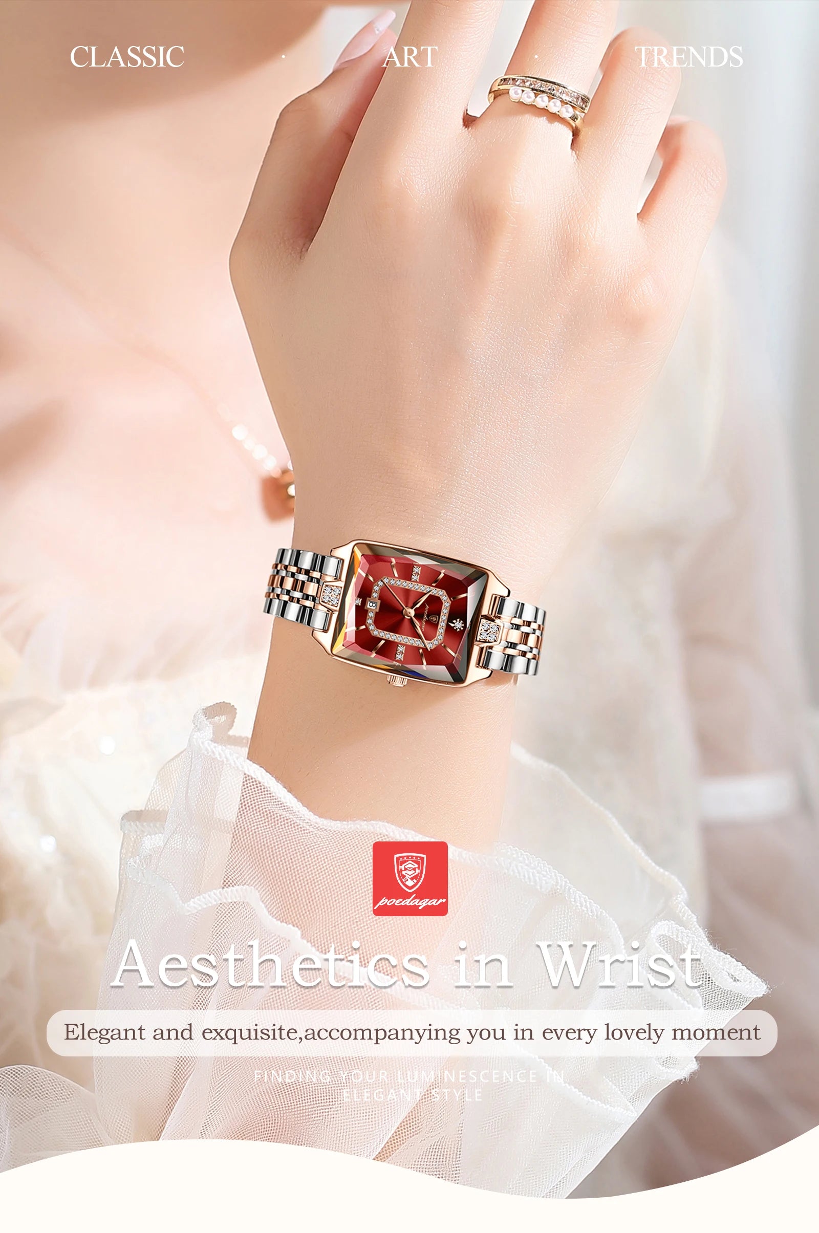 POEDAGAR Luxury Rectangle Watch For Woman Waterproof Calendar Simple Ladies Watch Fashion Stainless Steel Quartz Women's Watches