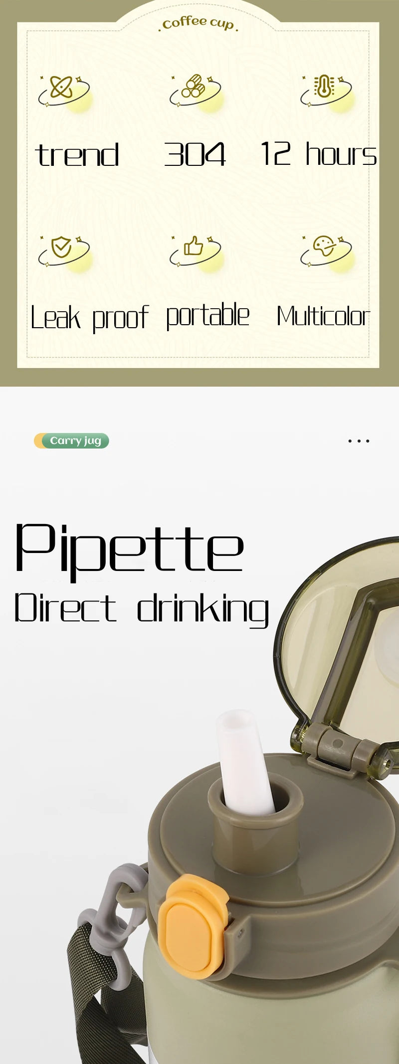feature: Stainless Steel Coffee Thermos Bottle With Straw