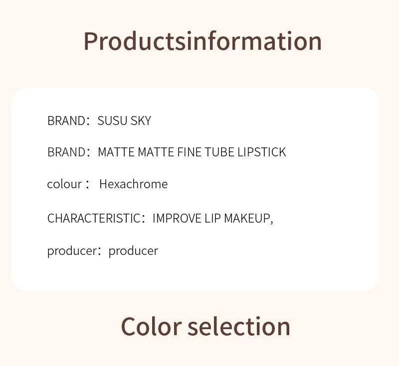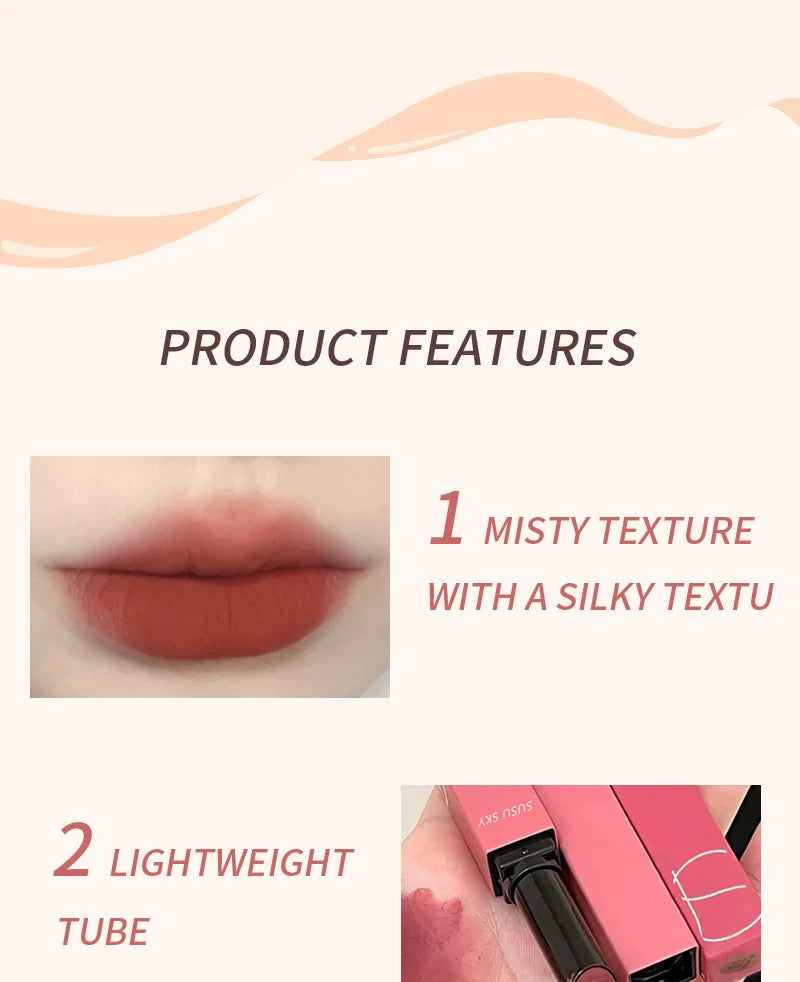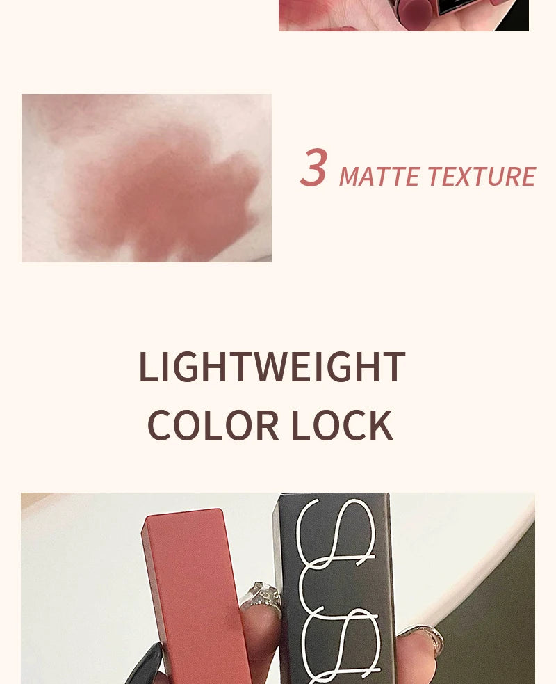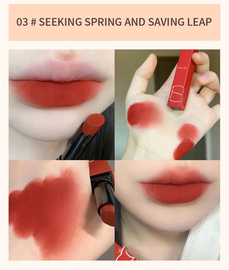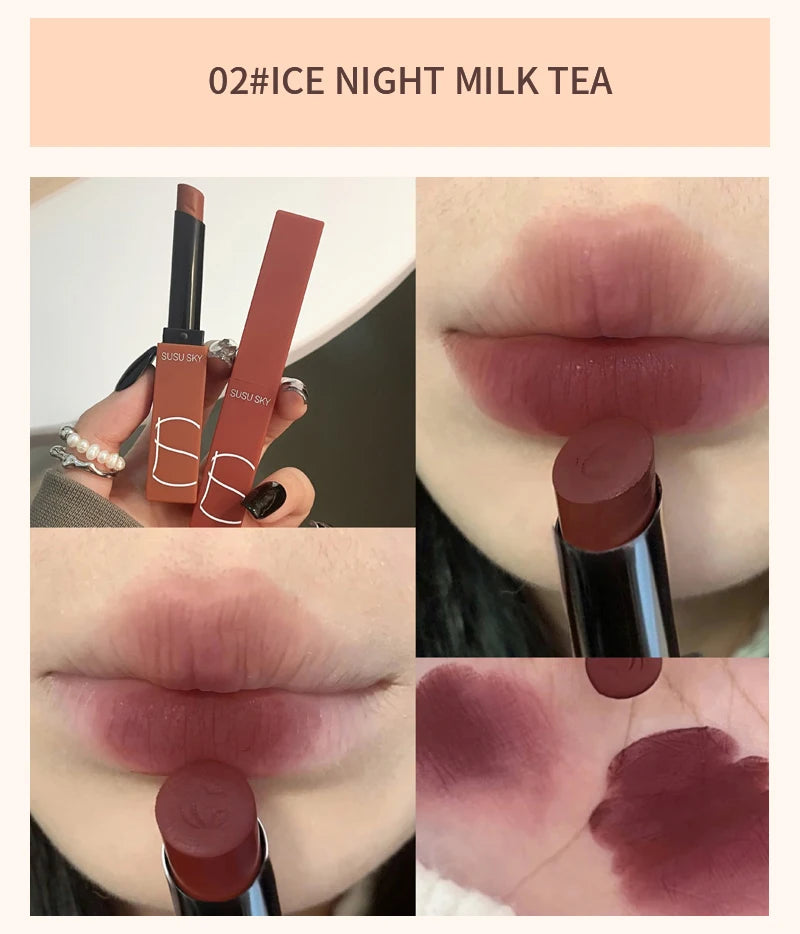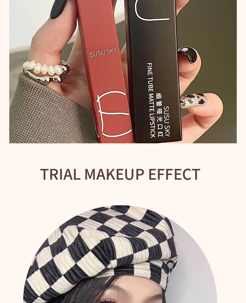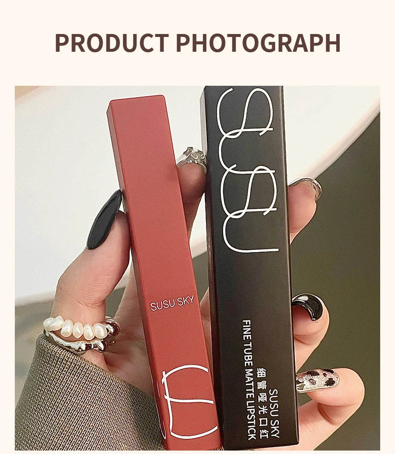 TX010Thin Tube Matte Lipstick, Waterproof and Sweatproof, Does Not Fade Or Remove Makeup, Can Be Used on Both Lips and Cheeks