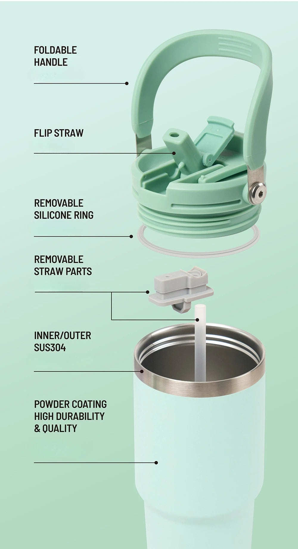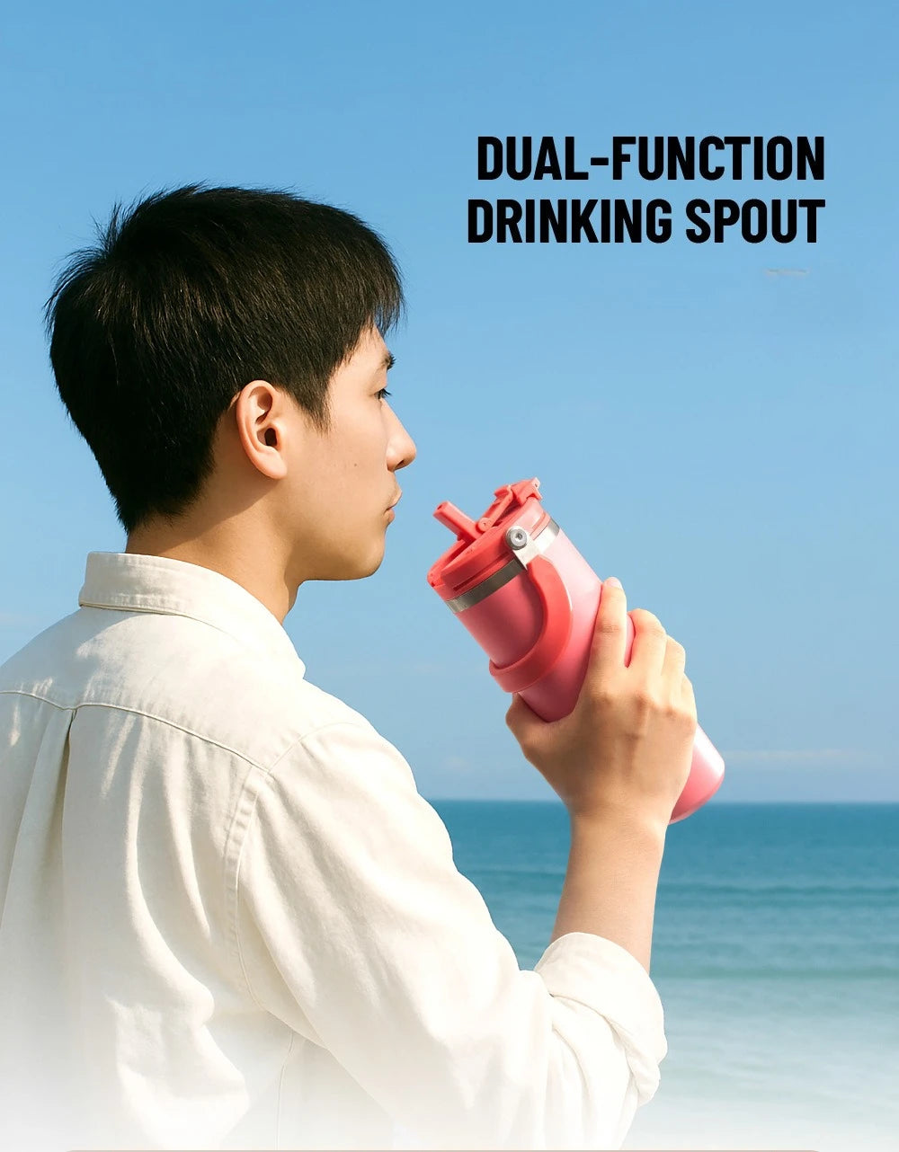 Tyeso Large-Capacity Vacuum Flasks Handle Vacuum Cup Dual-Drink Coffee Mug Stainless Steel Ice Cup Car Bottle Hot Cold Retention