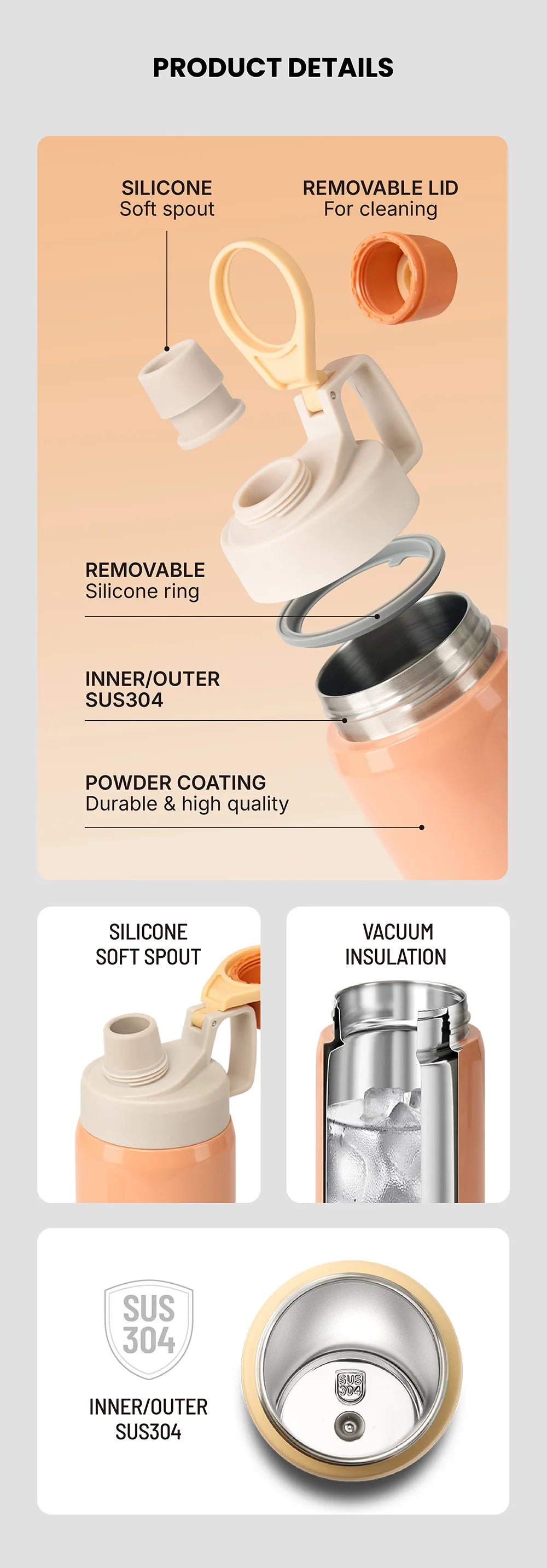 Tyeso Stainless Steel Sports Water Bottle Insulated Leak-Proof Portable Fitness Flask for Outdoor Workouts Travel Vacuum Flasks