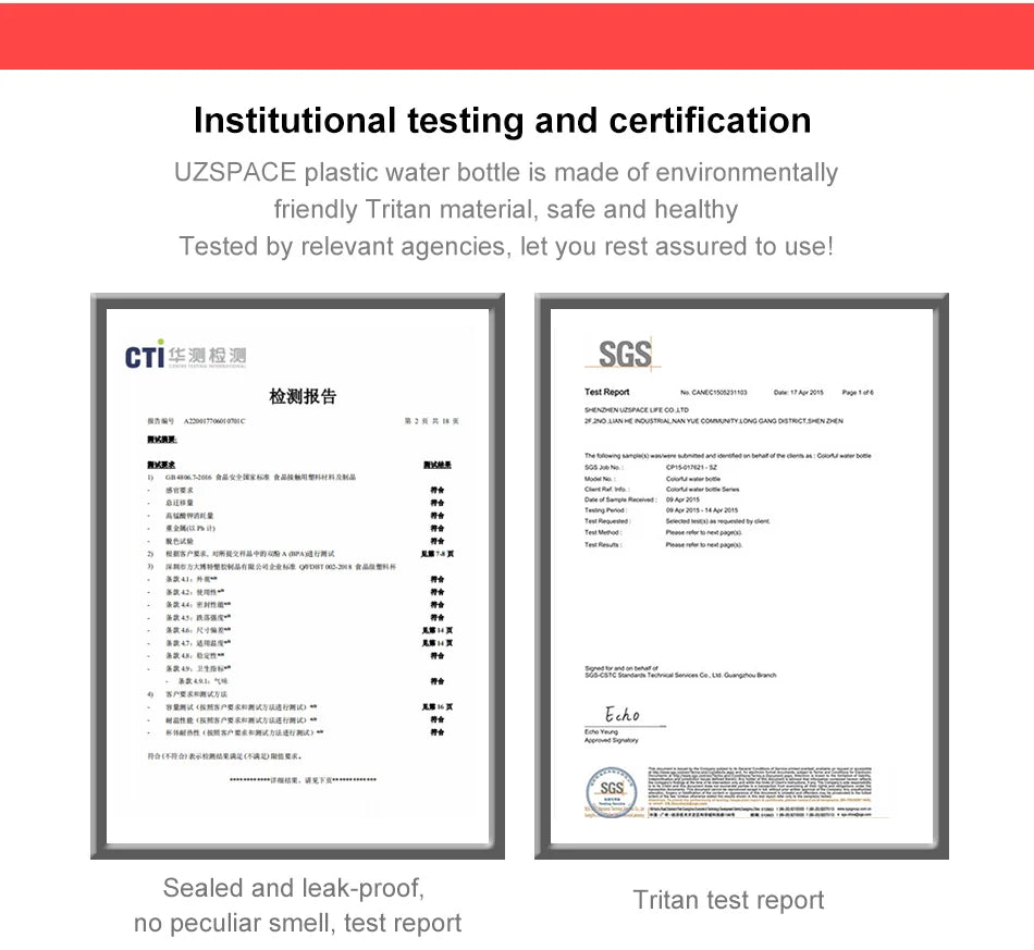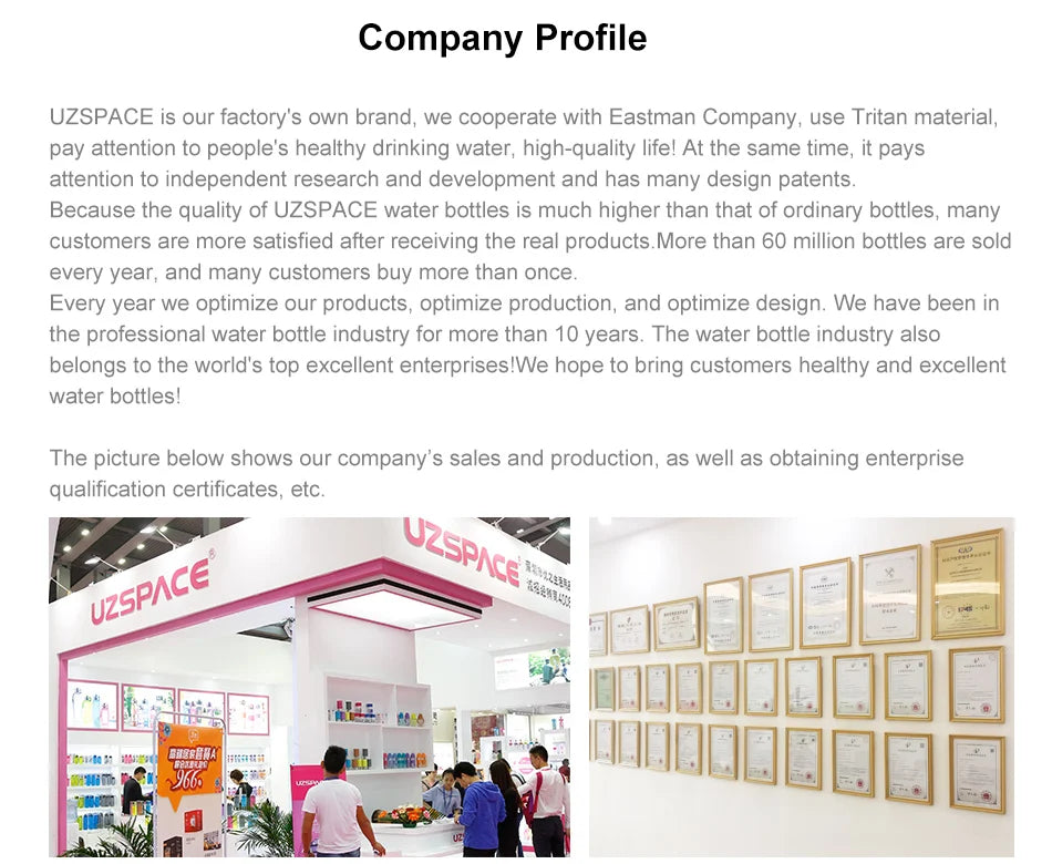 UZ Sports Water Bottle BPA Free Portable Leakproof Shaker Bottle Tritan Plastic Drinkware 500/1000ML Jug for Camping Gym School