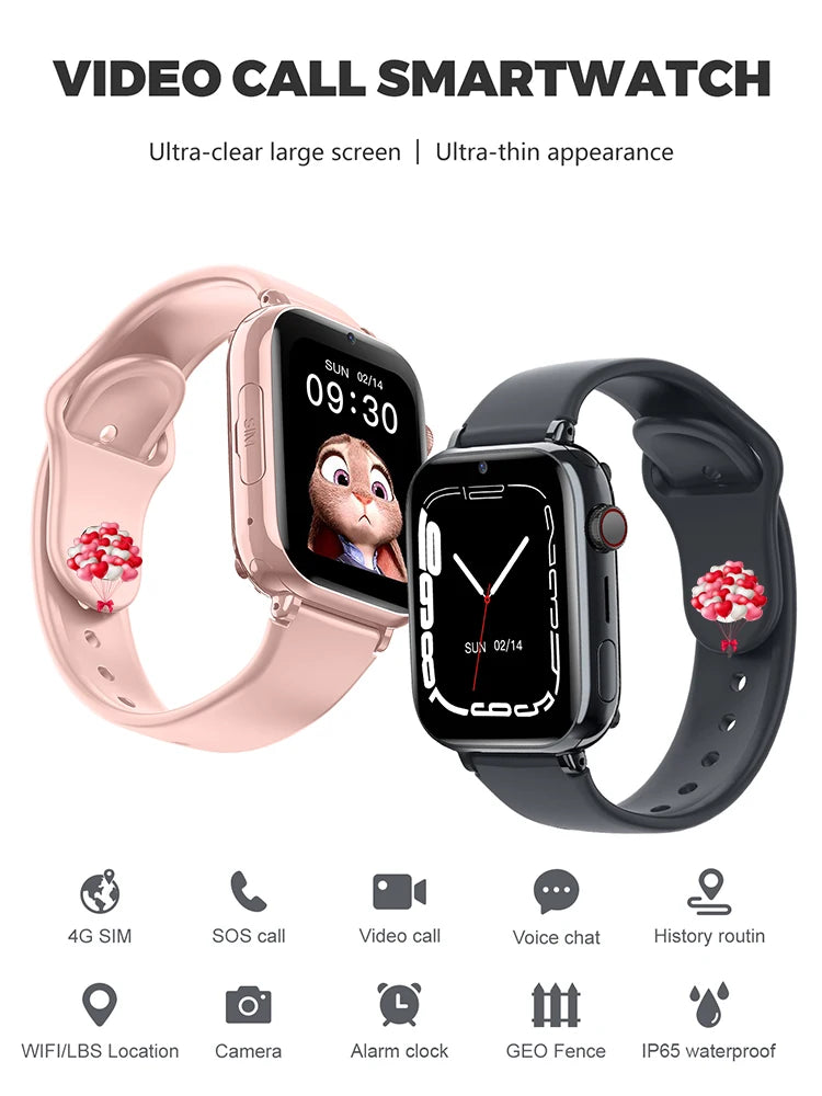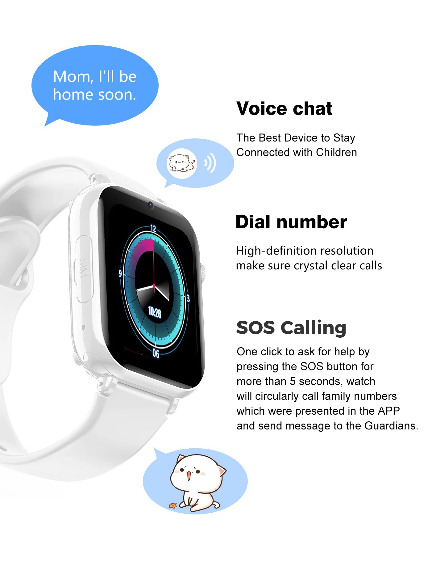 Kids Smart Watch: SOS GPS Location Video Call Camera Sim Card Waterproof 4G