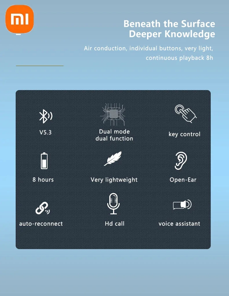 Xiaomi Wireless Bluetooth 5.3 Headphones Bone Conduction Waterproof Headset Stereo Over-Ear Sports Earphones Earbuds with Mic